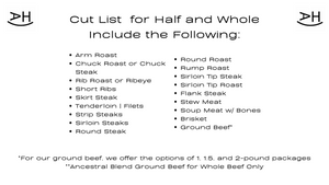 Half Beef* - A Half Beef is roughly 210 lbs (~$2,300)