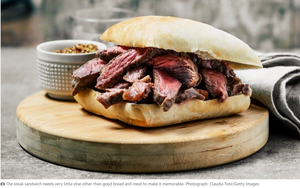 Preheat oven to 350 degrees. Mix the Mayonnaise, Basil, Rosemary, and Thyme. Apply thin layer to both the top and bottom pieces of the ciabatta bread. Add thinly sliced onion and spinach as desired. Top it off with the already cooked steak* and some Swiss cheese. Place sandwiches onto a tray and place into oven for 10 minutes (or until cheese is melted and steak is hot). Enjoy!